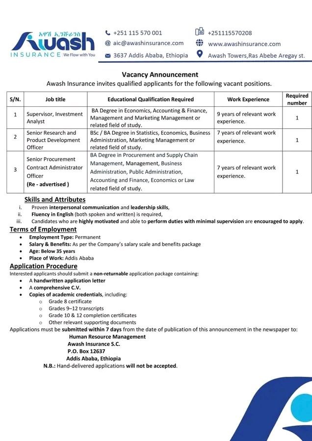 🚀 Awash Insurance S.C. Careers: Join Vision 2030!