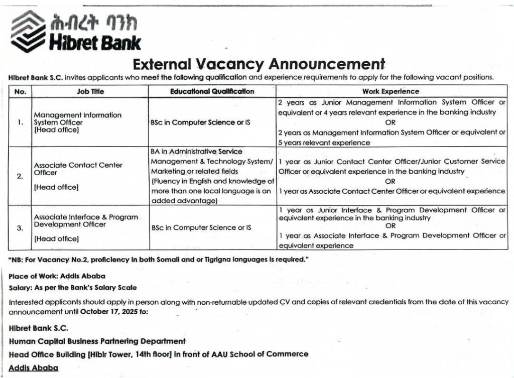 URGENT: Ethiopian Airlines Hiring Fresh Graduates Immediate Opportunity for TVET Graduates! Ethiopian Airlines, Africa’s leading and most prestigious aviation group, has announced urgent vacancies specifically for fresh graduates in the roles of Trainee Industrial Mechanic and Trainee Industrial Electrician. This is an exceptional chance to kickstart your technical career with a world-class airline! If you […]
