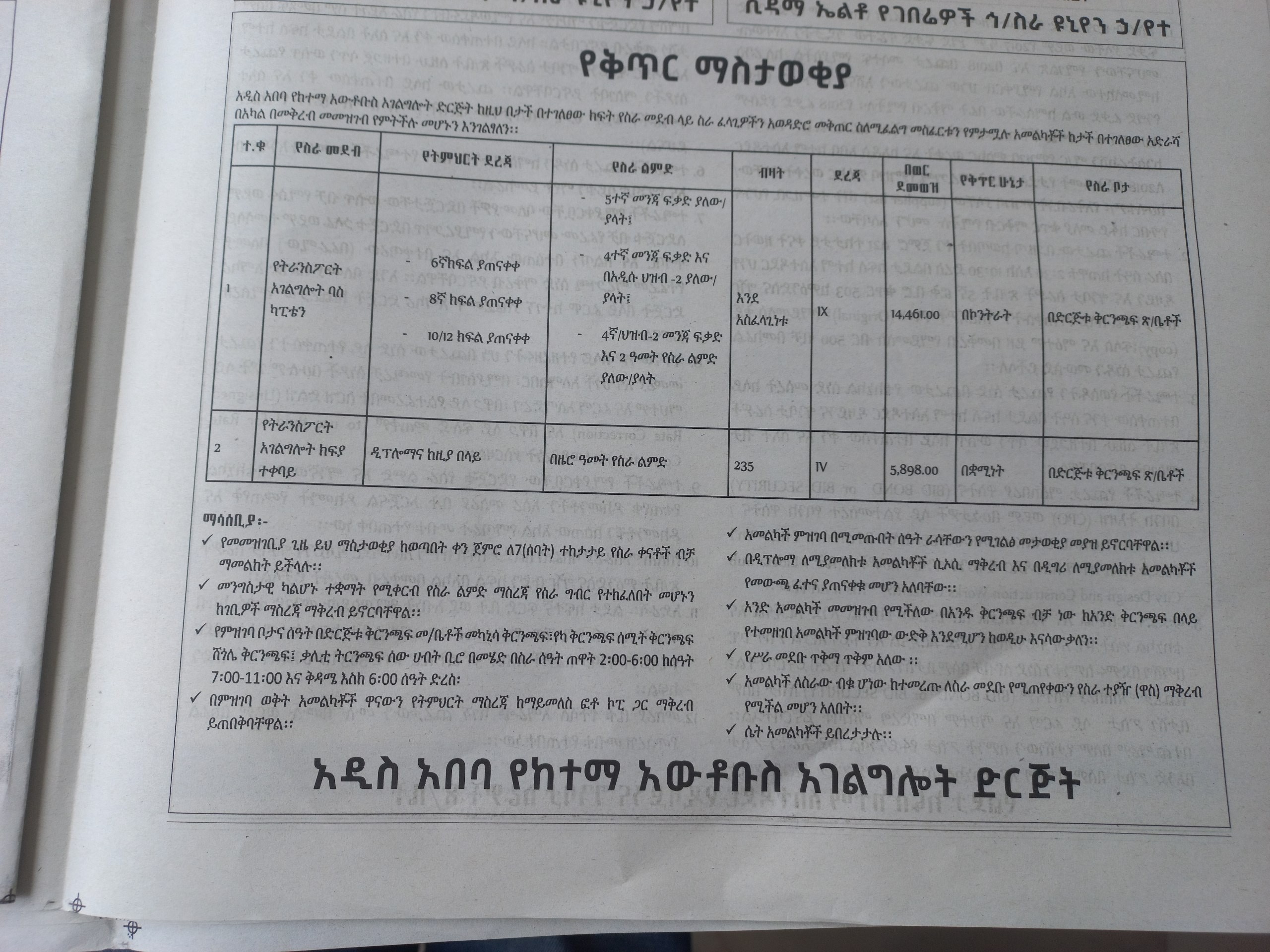 | 2. Bus Captain (Driver) | 14,461 ETB | 30 Posts |
