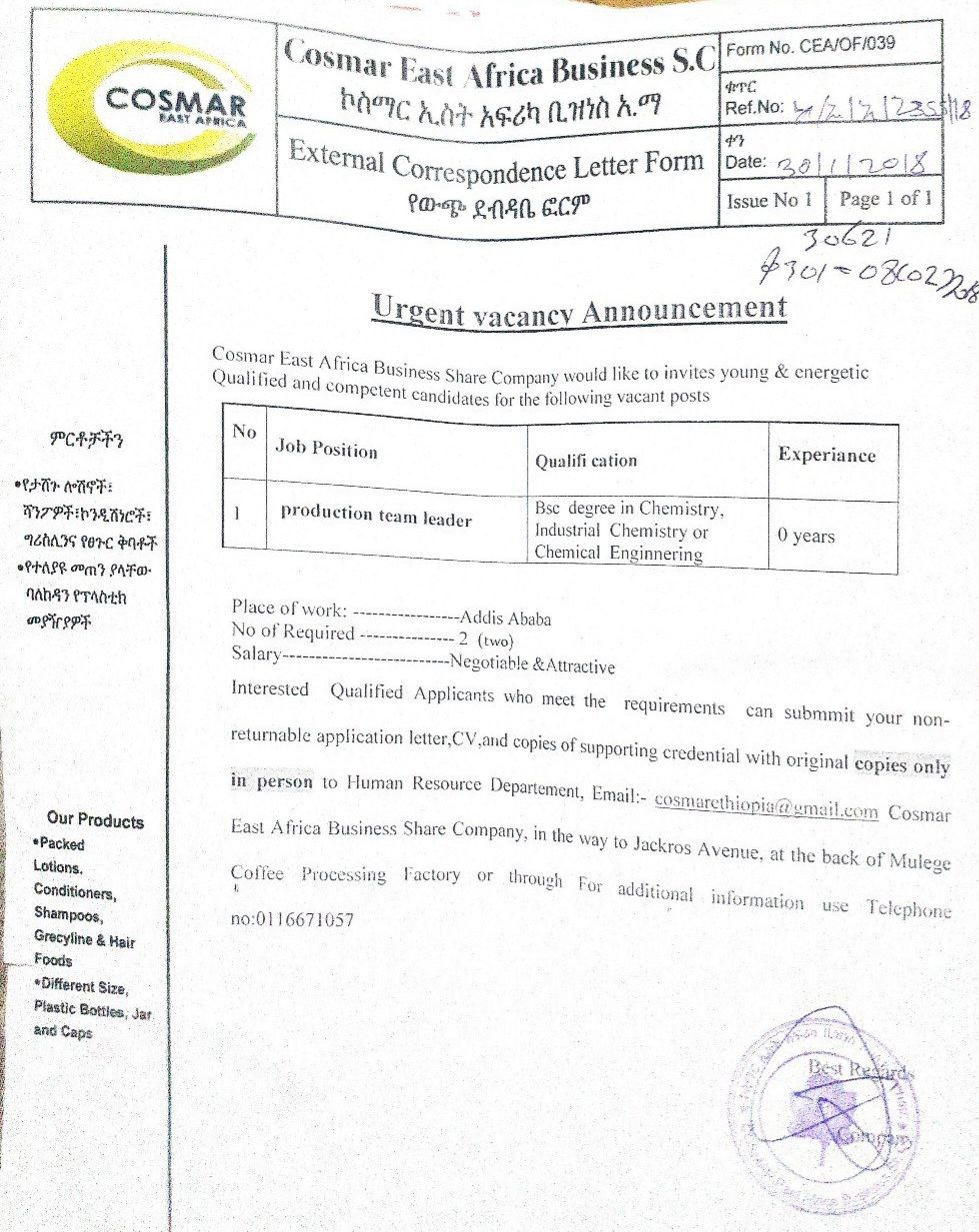 - Education: BSc Degree in Civil Engineering (2016/2017 E.C. graduates with CGPA >3.00).