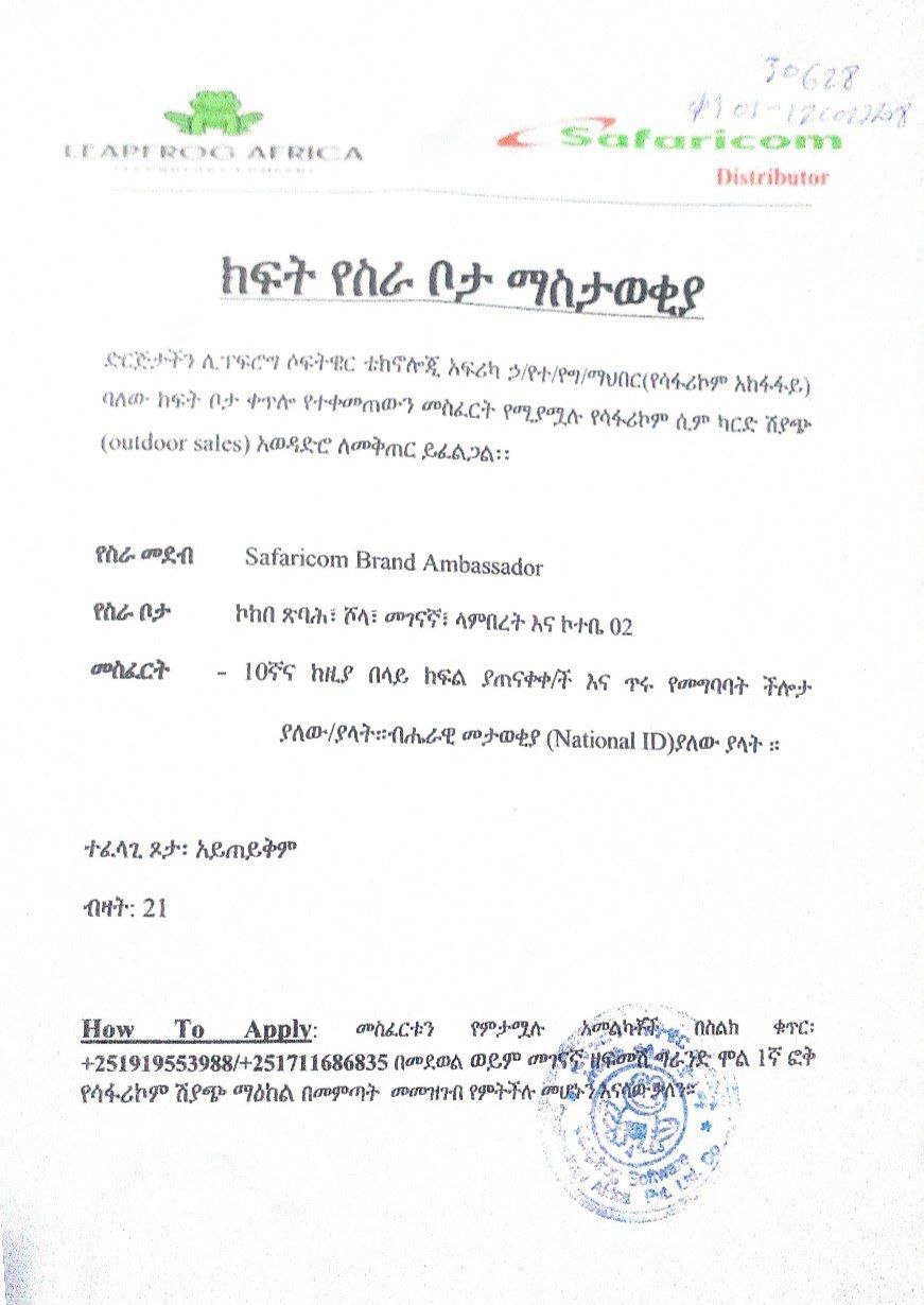 Ethiojobs | ASER Construction and Safaricom Job Opportunities 2025