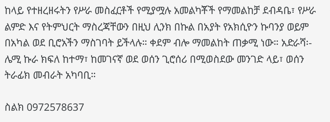 Available IT Expert Positions (All in Addis Ababa)