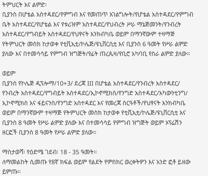Apply at: Ethiopian Skylight Hotel (Human Resources Office).