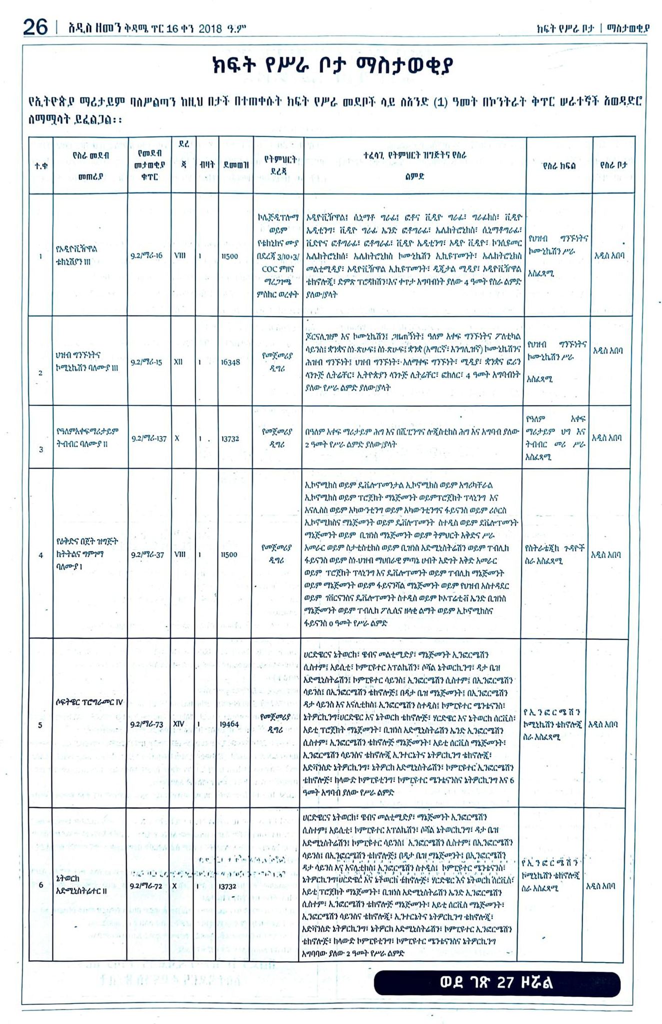 We inform you that you can register in person at the Ethiopian Maritime Authority Headquarters, Sunshine Building, Seventh (7th) Floor, Stephen’s Church Area, with a non-returnable photocopy of your education and work experience and other additional documents.