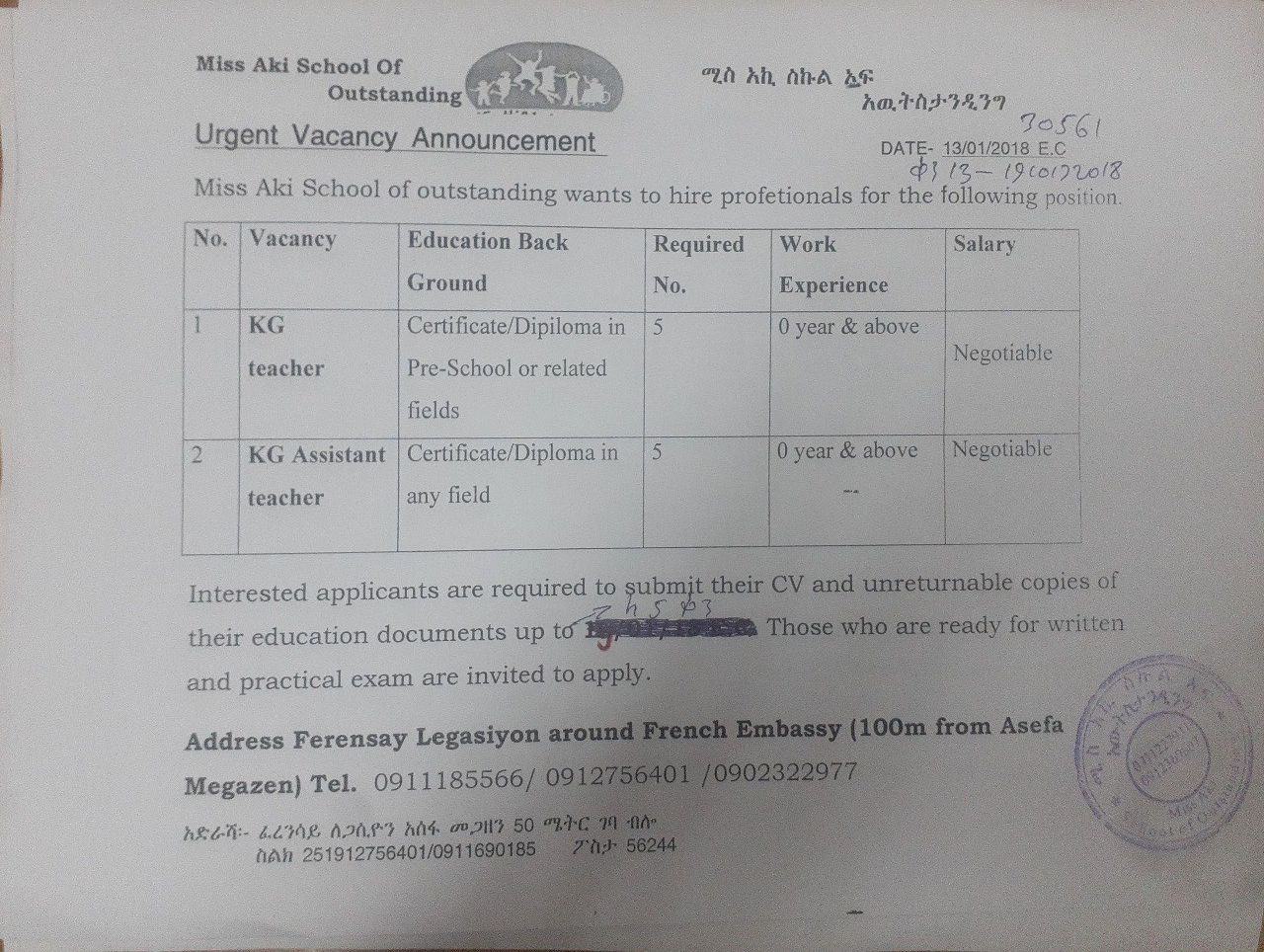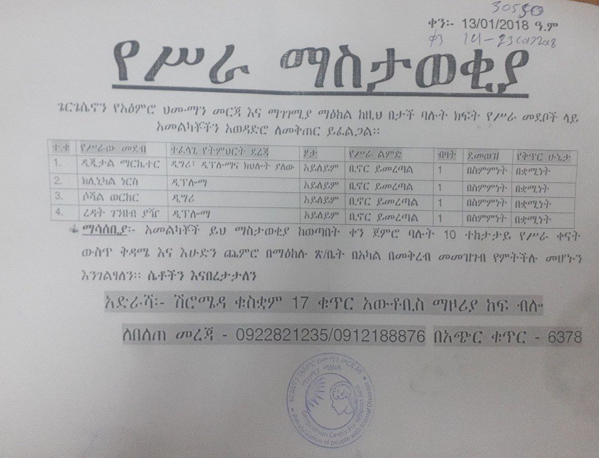 Qualifications: Bachelor Degree in Accounting. Experience: 3 years relevant experience. Location: Addis Ababa – Kality.