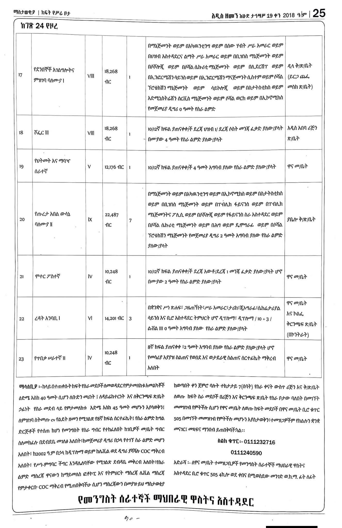 | 1. General Service Officer | 3 – 5 Years | Addis Ababa |