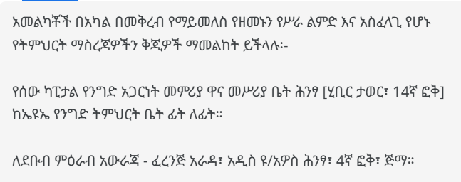 📍 For Head Office & Addis Ababa Roles: