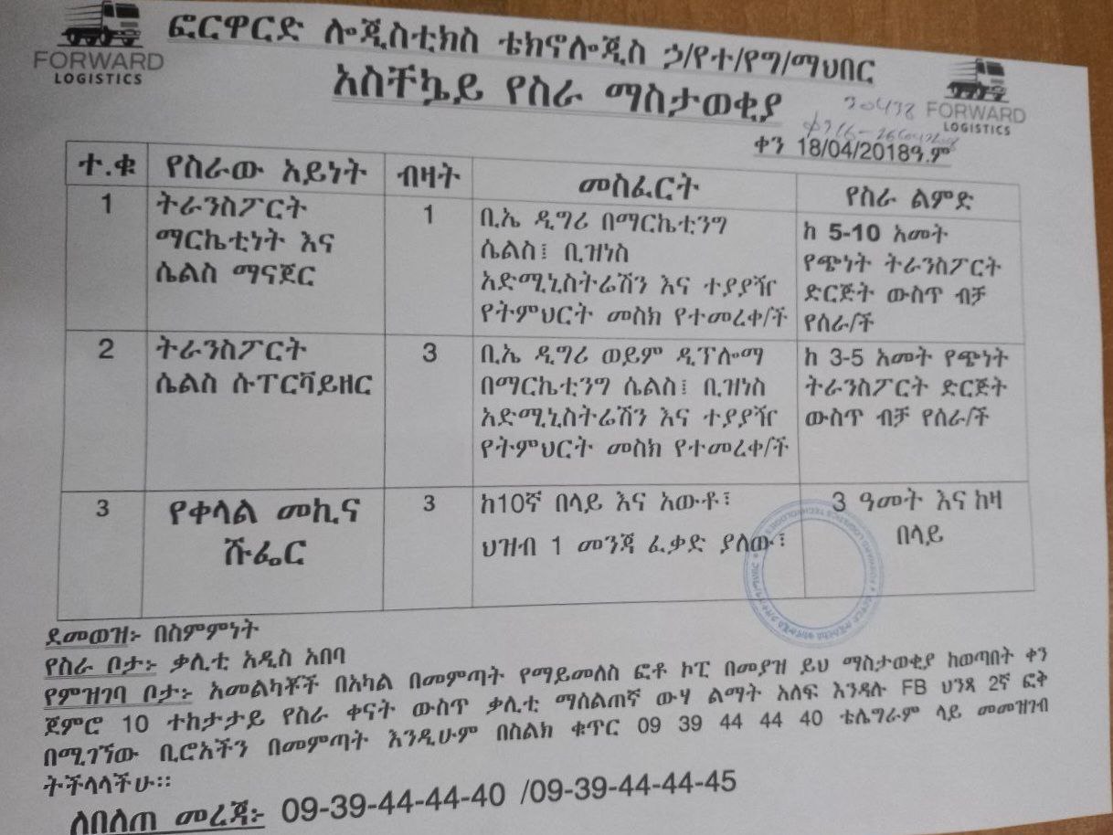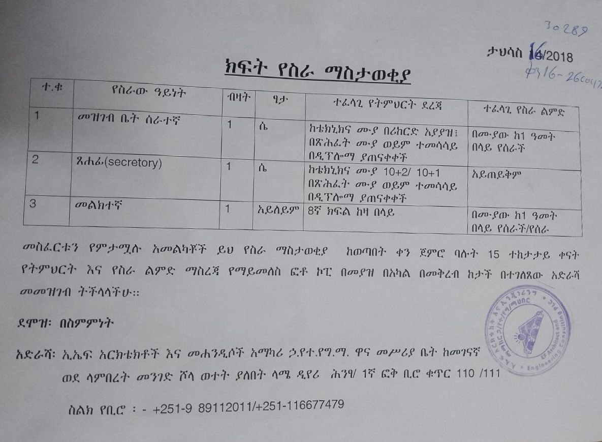 - Please do not apply with a fraudulent CV, since phony educational credentials and job experience are prohibited under the Ethiopian Criminal Code.