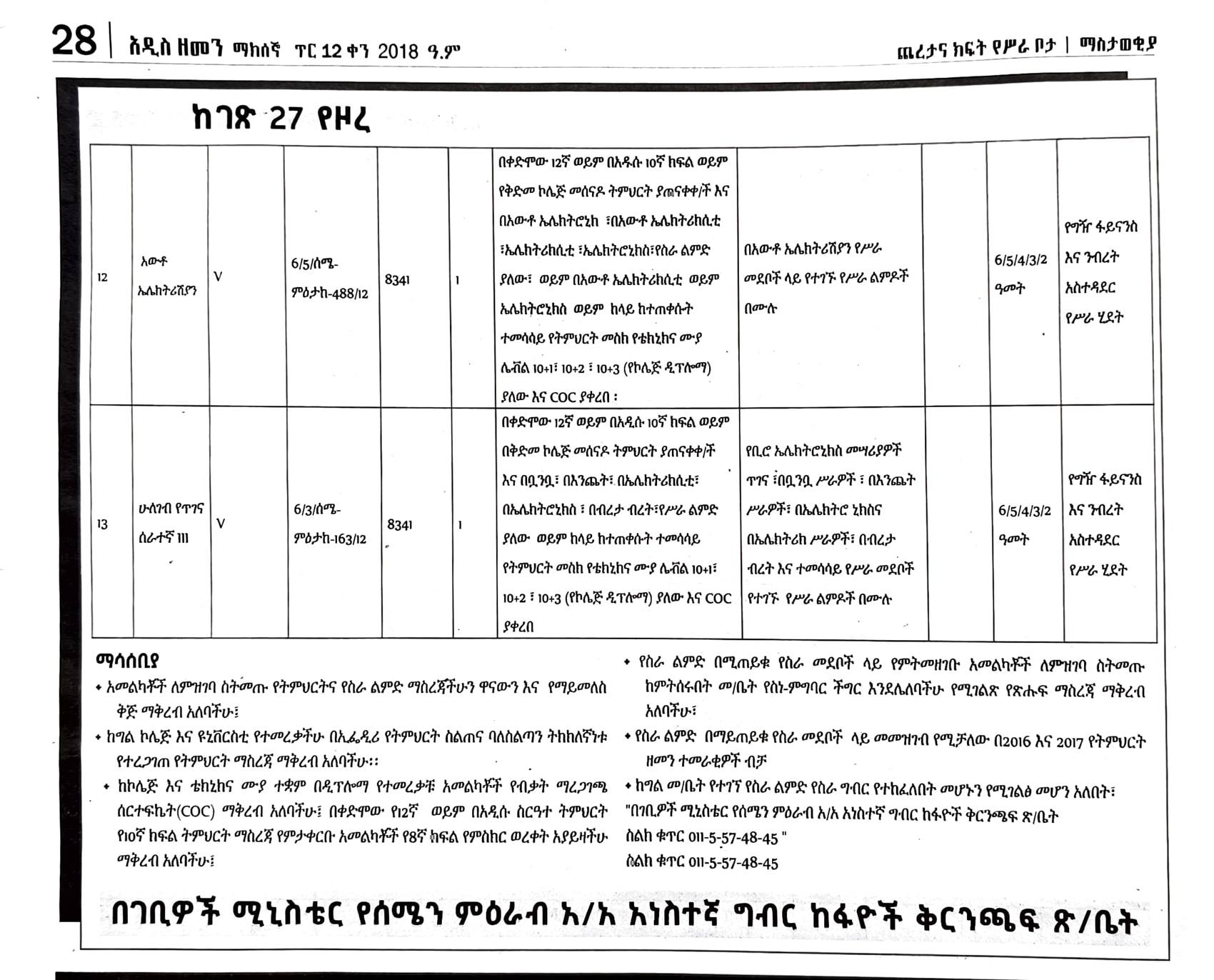 - Fresh Graduates: For 0-year positions, only 2016 & 2017 E.C. graduates are eligible.