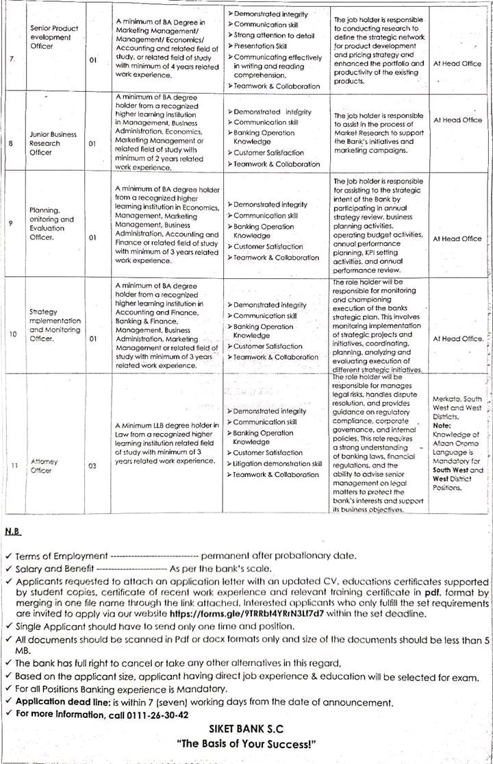 Siket Bank S.C. is inviting qualified and competent applicants for a wide range of new positions. This is a major hiring initiative for talented professionals looking to grow their careers in the banking sector.